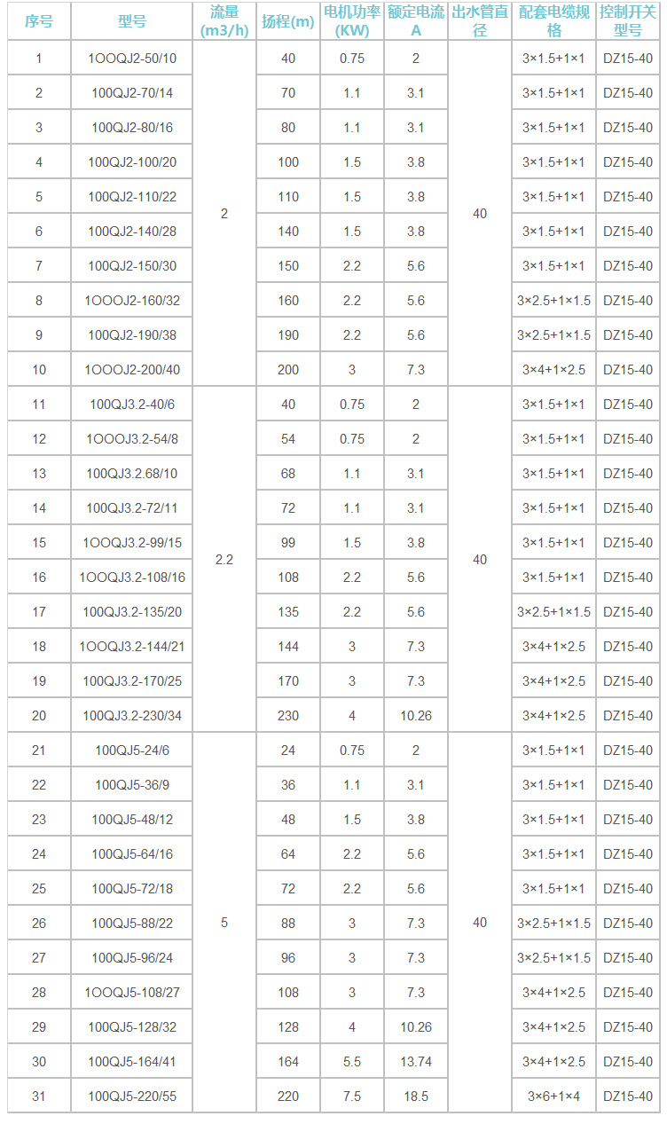 不銹鋼深井泵型號參數(shù):