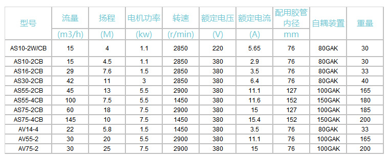 AS、AV型撕裂式潛污泵型號(hào)參數(shù)